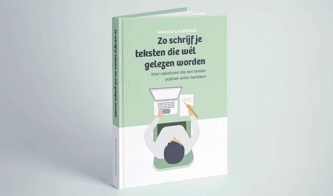 Boek ontwerp voor copywriters. Gemaakt bij de studio WAT ONTWERPERS. Een boek om te leren hoe je goede teksten schrijft. Geschreven door Anneke Laverman. 'Zo schrijf je teksten die wel gelezen worden''